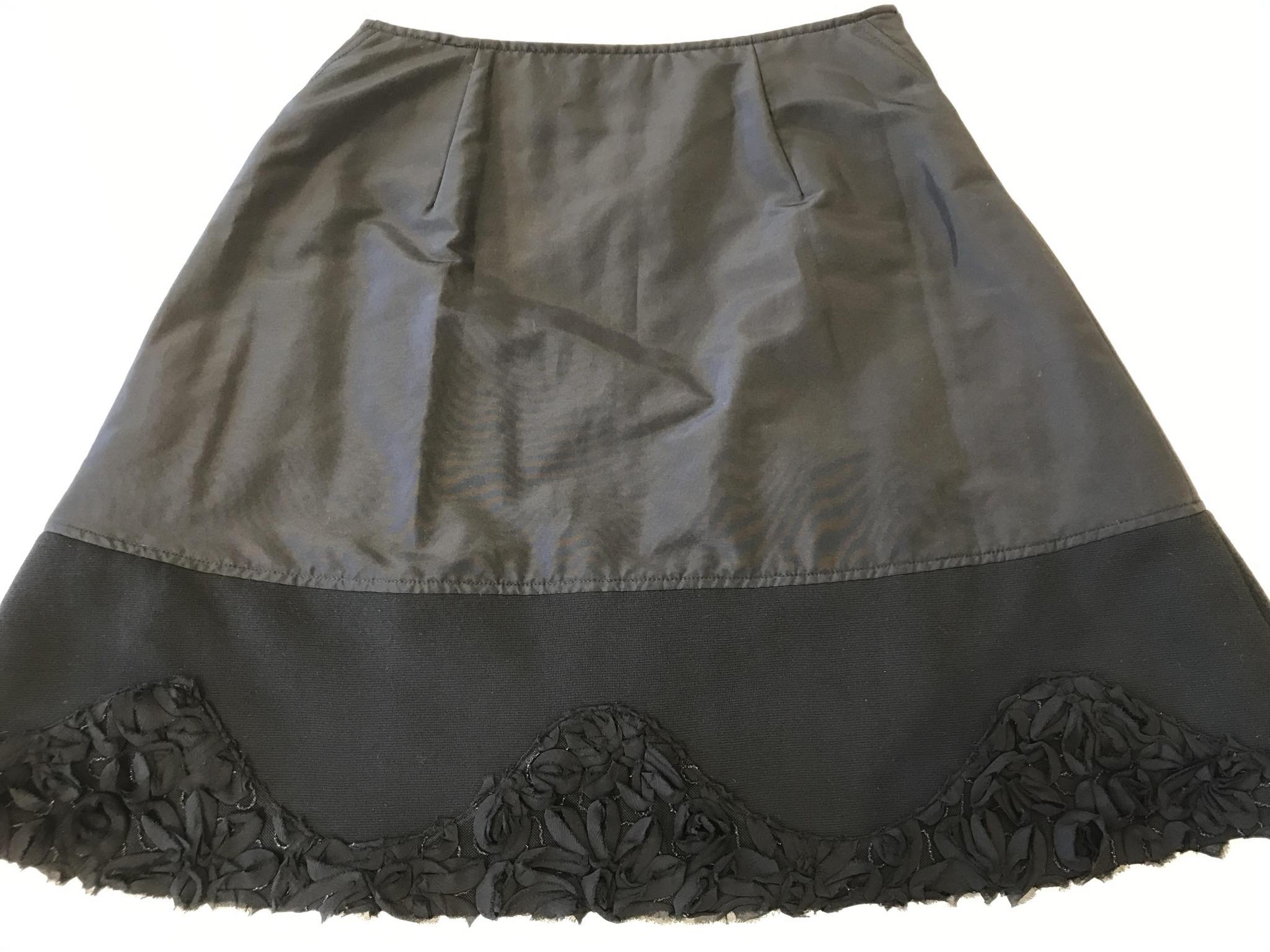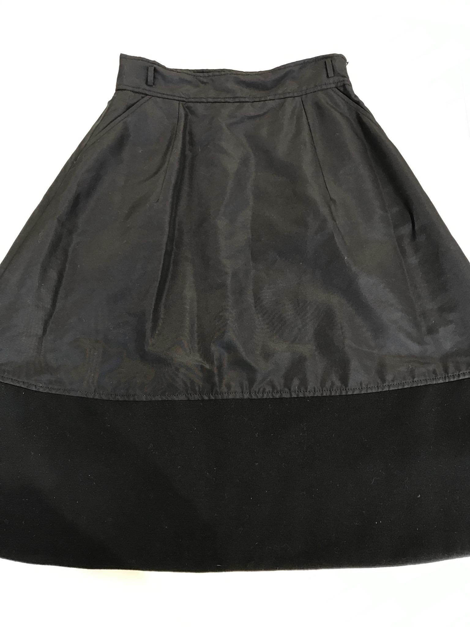 短くなった分を、単純に、別布を平行にお付けすることは出来ますが、それではご提案する側としてはつまらないなと思いましたので、お持ちいただいたスカートの雰囲気に合わせたリメイクのご提案をさせていただきました。
