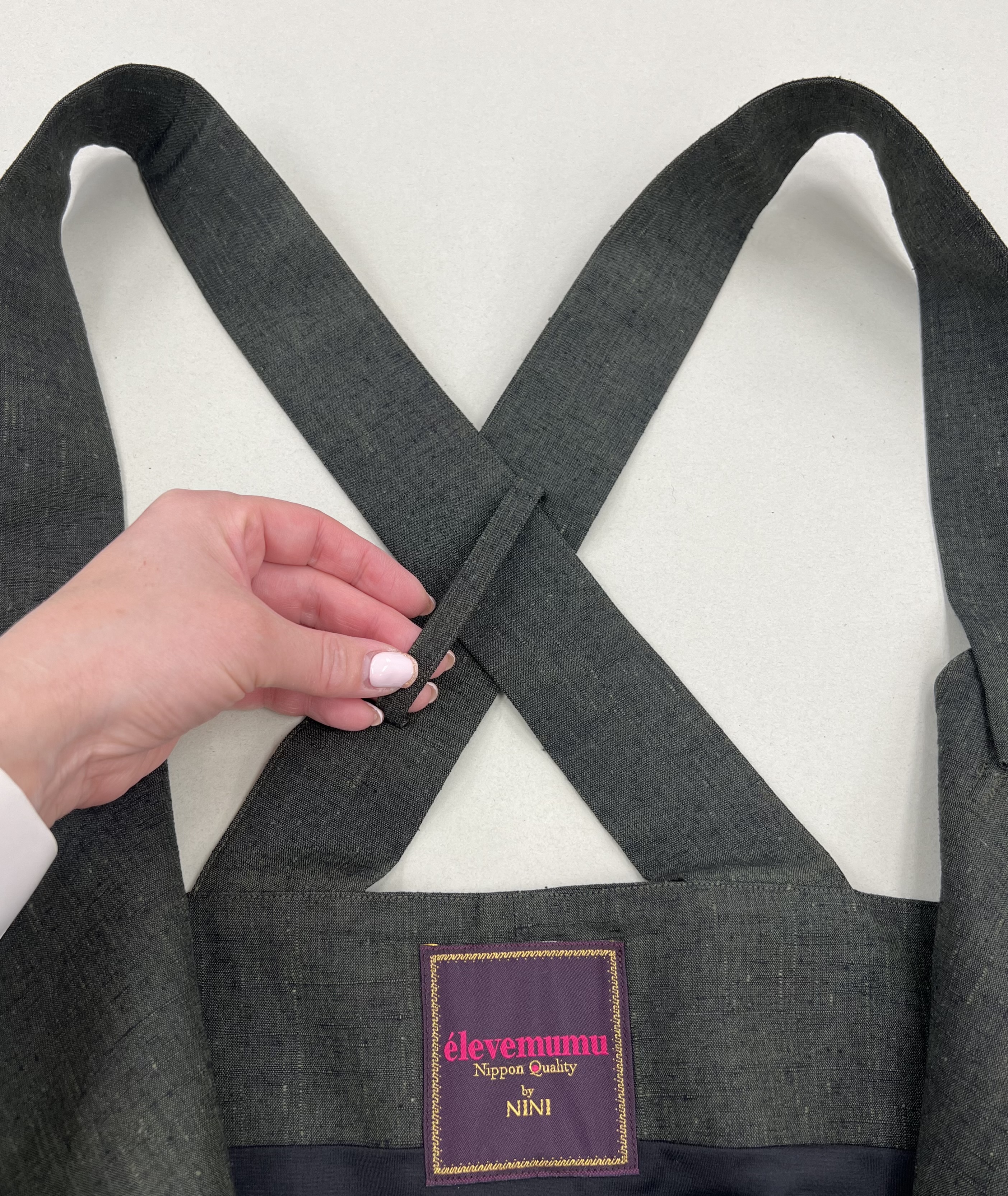 肩紐がぐずつかない様、ベルト通しをつけることで着やすさを兼ね備えました。